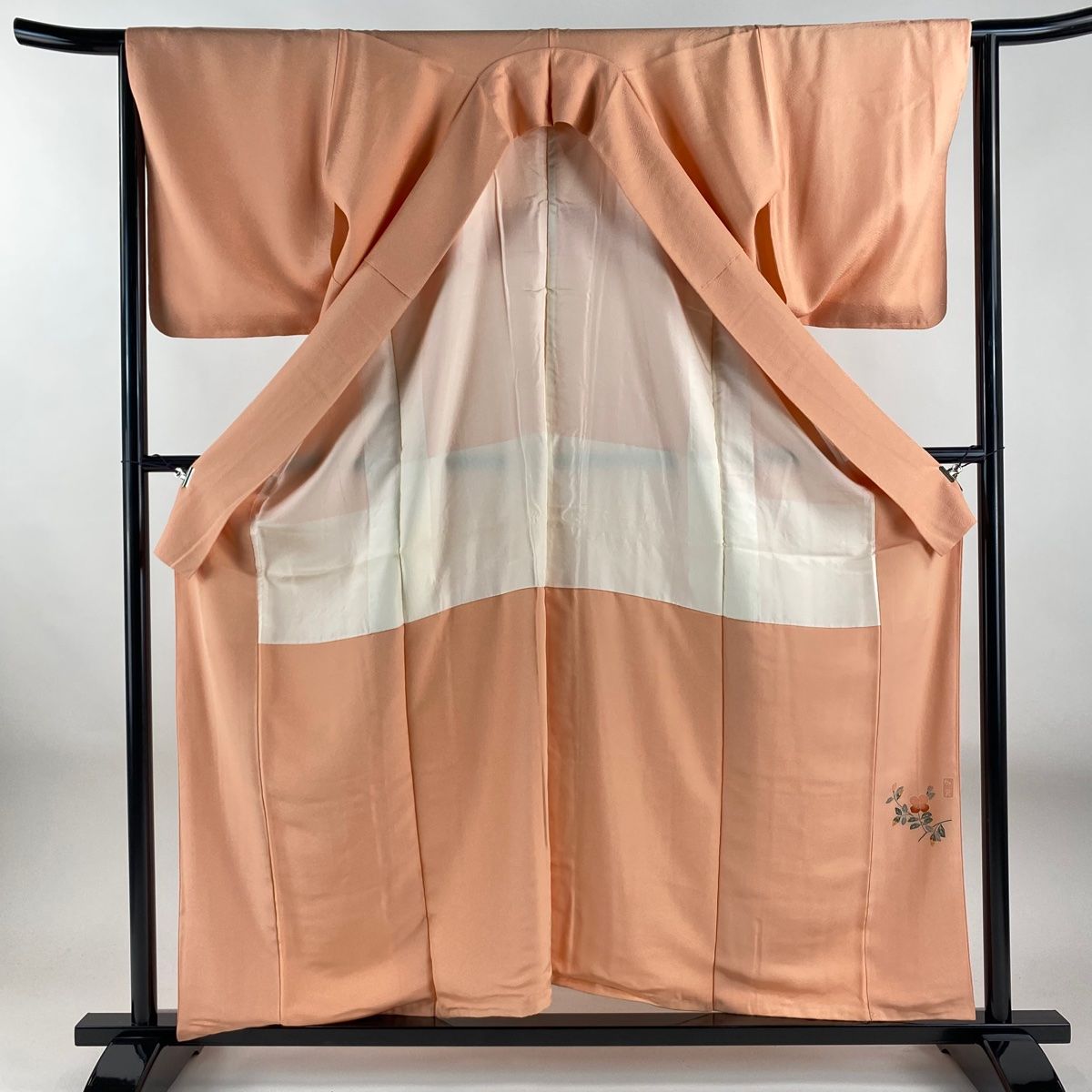 色無地 身丈157.5cm 裄丈64.5cm M 袷 押田正義 落款 地紋 サーモンピンク 正絹 秀品 一つ紋 WWW_GLOBALQUALITYIMPORTS_COM