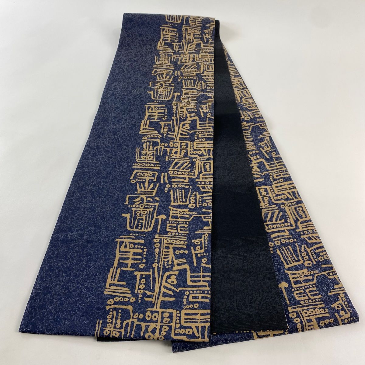 袋帯 幾何学模様 銀糸 紺色 全通 正絹 WWW_GLOBALQUALITYIMPORTS_COM