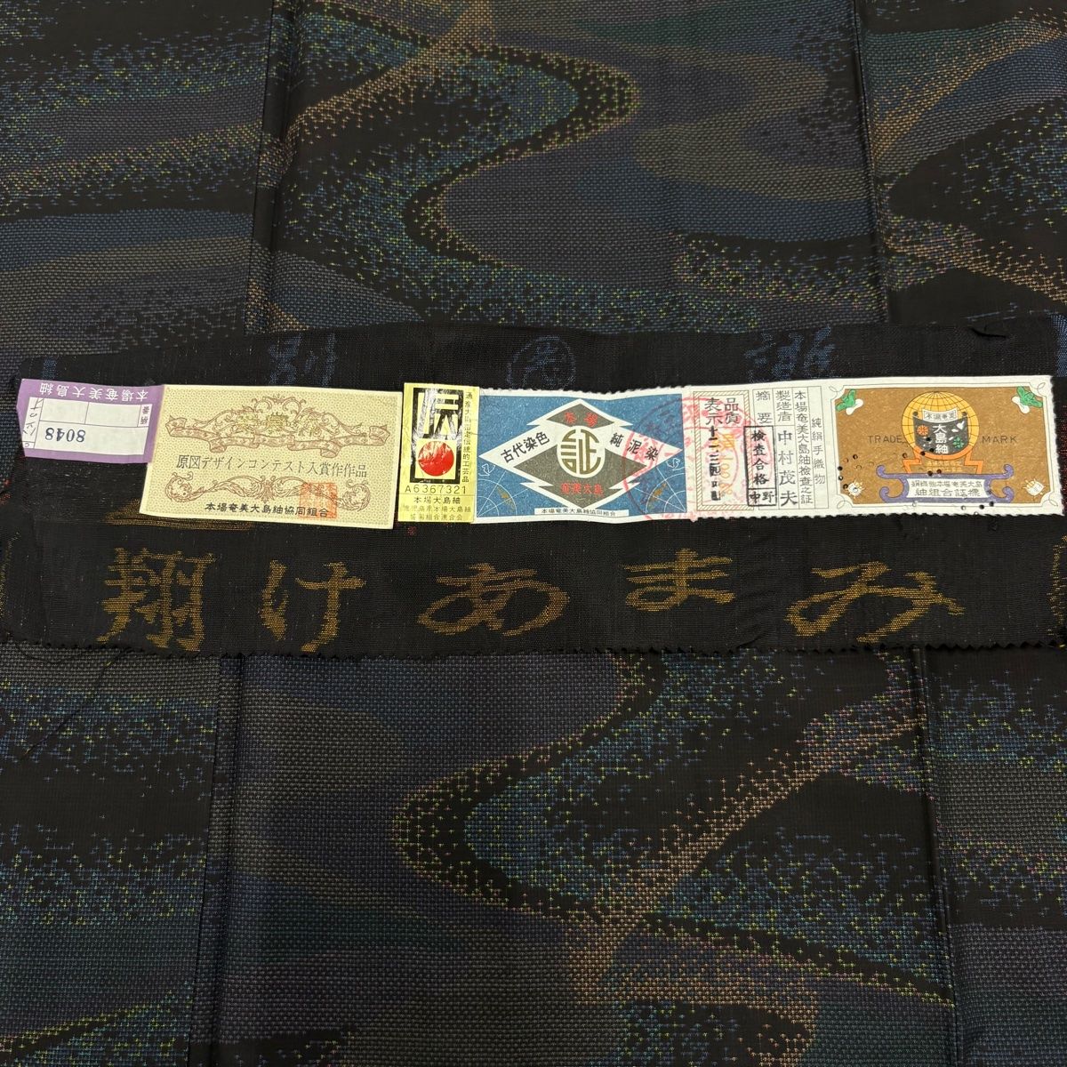 大島紬 身丈158cm 裄丈65.5cm M 袷 純泥染 証紙 流水 濃紺 正絹の検索結果