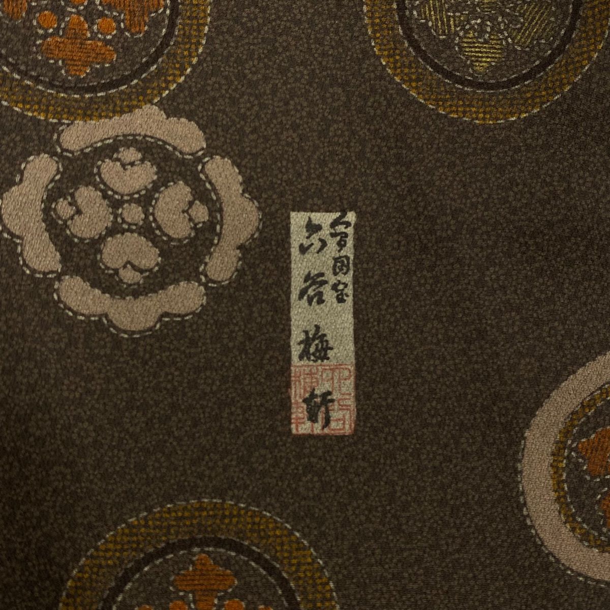 付下げ 身丈155.5cm 裄丈64.5cm M 袷 人間国宝 六谷梅軒 落款 丸文 花 金彩 灰茶 正絹の検索結果