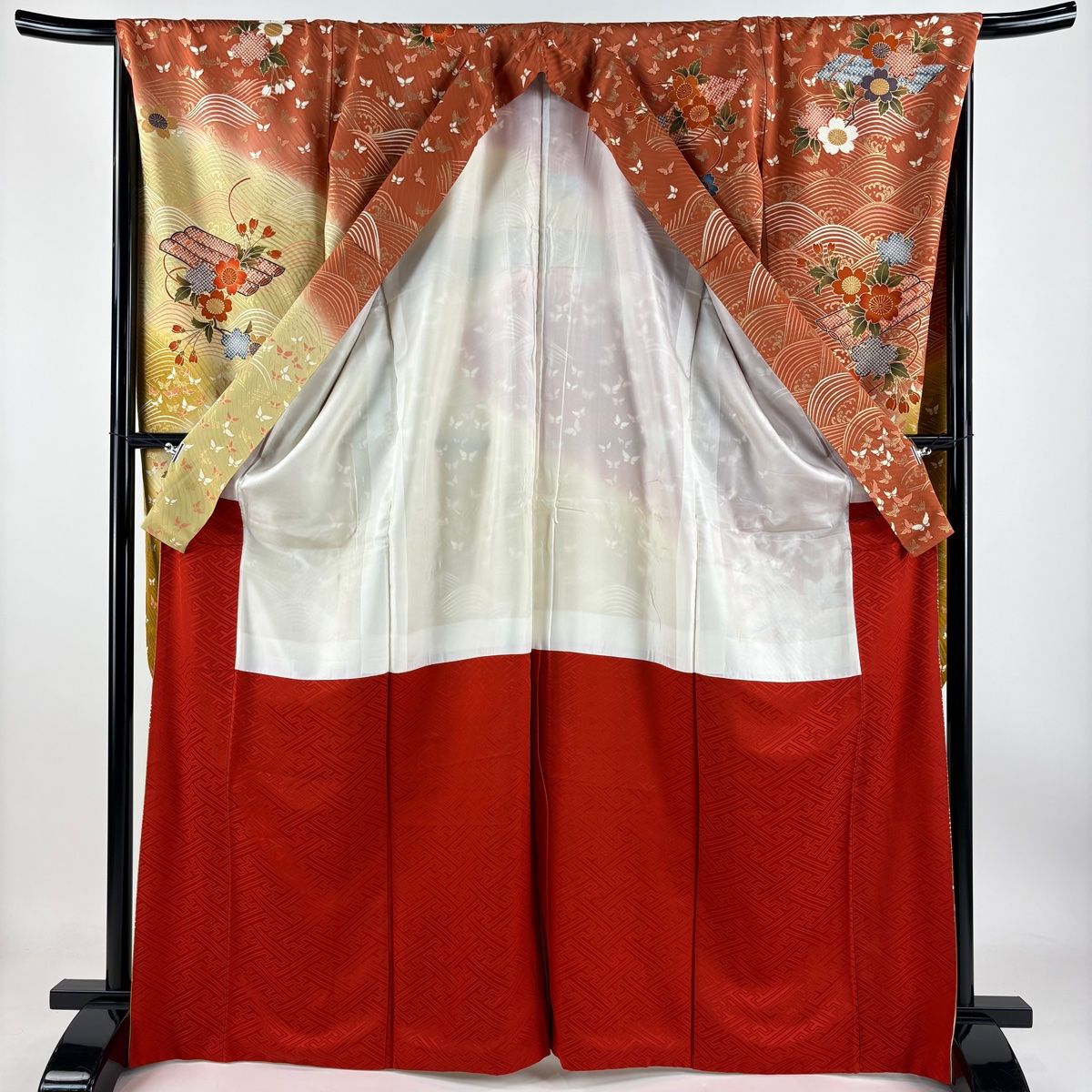 振袖 身丈166.5cm 裄丈66cm M 袷 蝶 笠松 金彩 染め分け 赤茶 正絹 秀品の検索結果