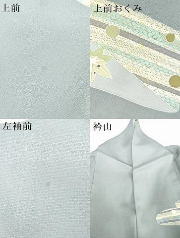 付下げ 身丈162cm 裄丈68cm L 袷 鷺 葉柄 青灰色 正絹