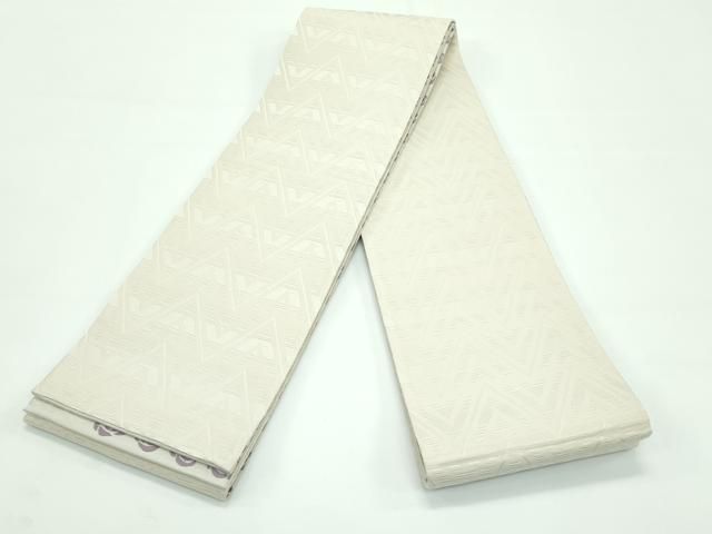 半幅帯 秀品 縞 麻の葉 銀通し 灰白 正絹