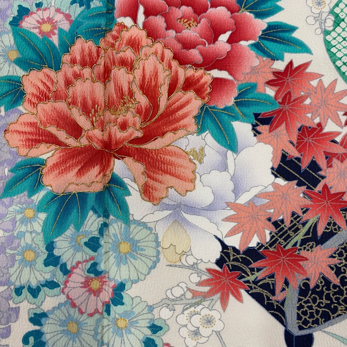 振袖 身丈158cm 裄丈63cm S 袷 草花 琴 金糸 金彩 クリーム 正絹 秀品の検索結果