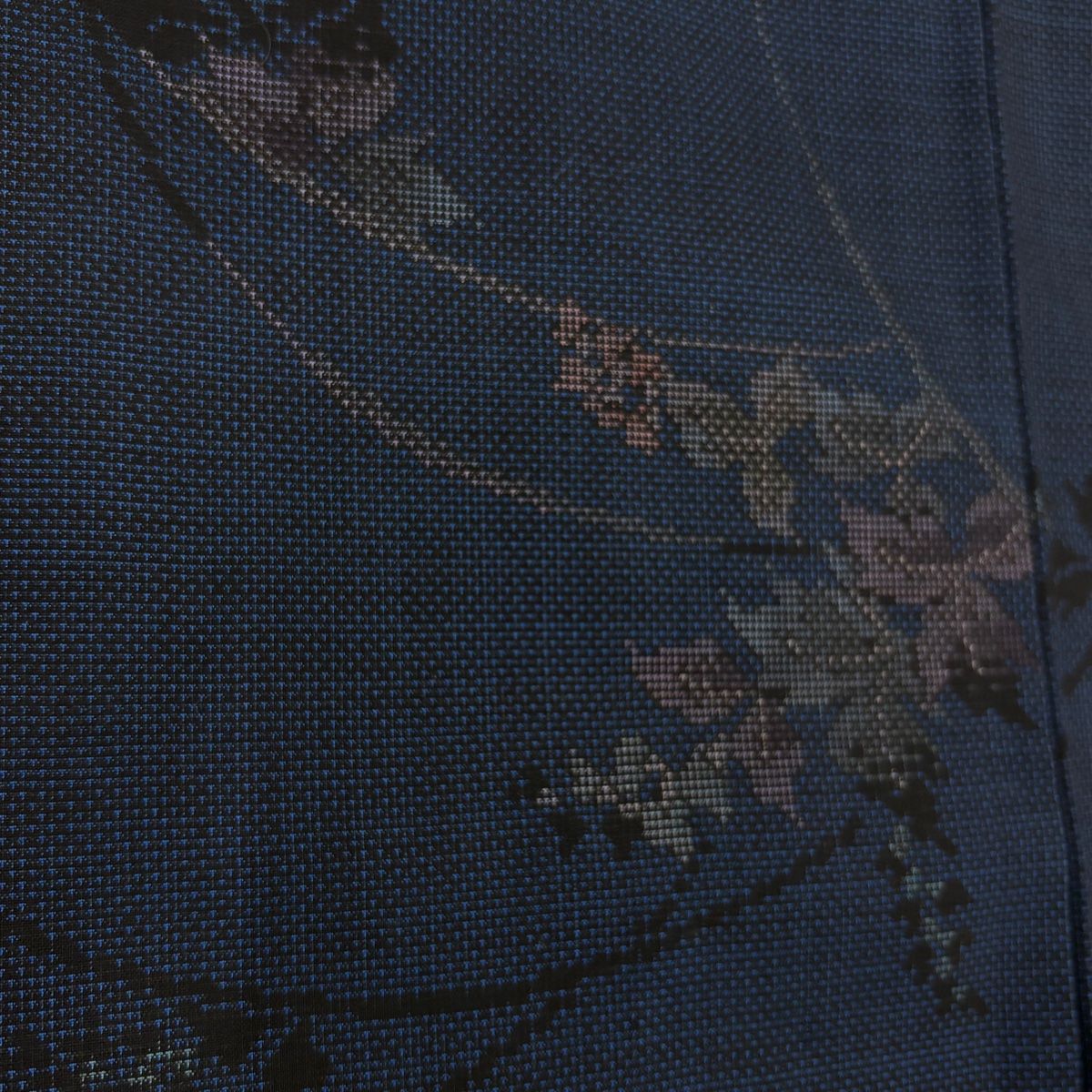 紬 身丈161cm 裄丈63.5cm S 袷 草花 紺色 正絹 秀品の検索結果