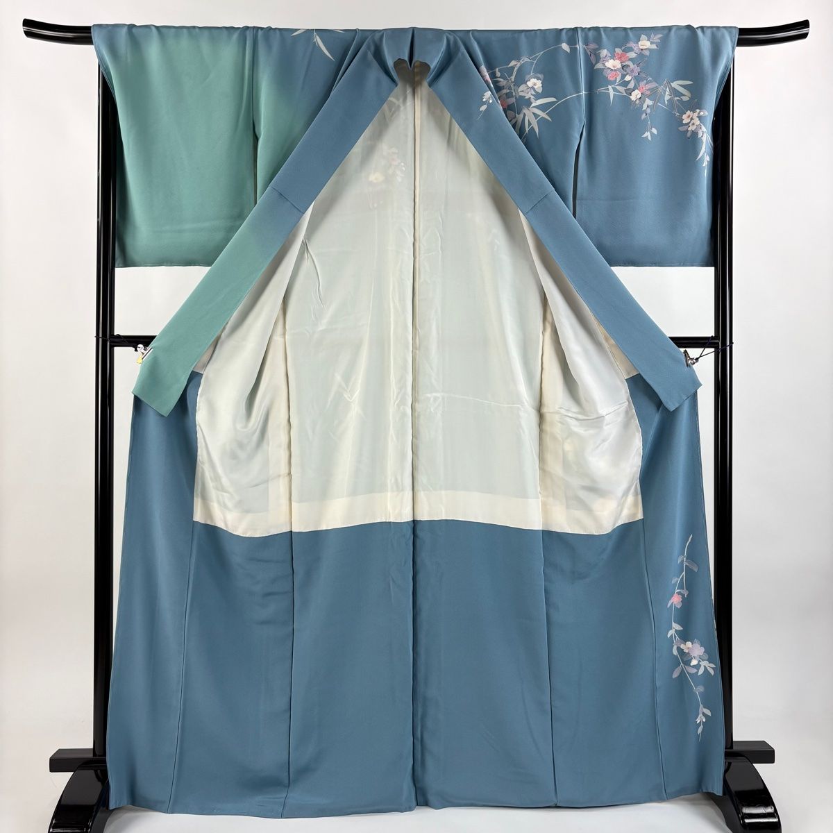 訪問着 身丈167cm 裄丈68.5cm L 袷 落款 枝花 ぼかし 青灰色 正絹の検索結果