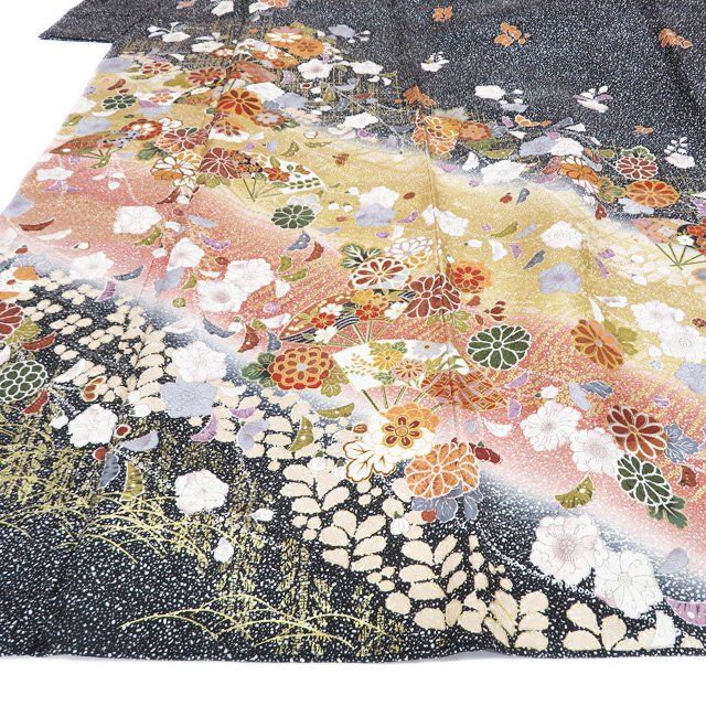 特選 訪問着 着物 正絹 袷 フォーマル 花模様 辻が花模様 たたき染 黒色 多色 金 身丈169cm 裄68cm L トール きもの北條 A1290-5 WWW_GLOBALQUALITYIMPORTS_COM