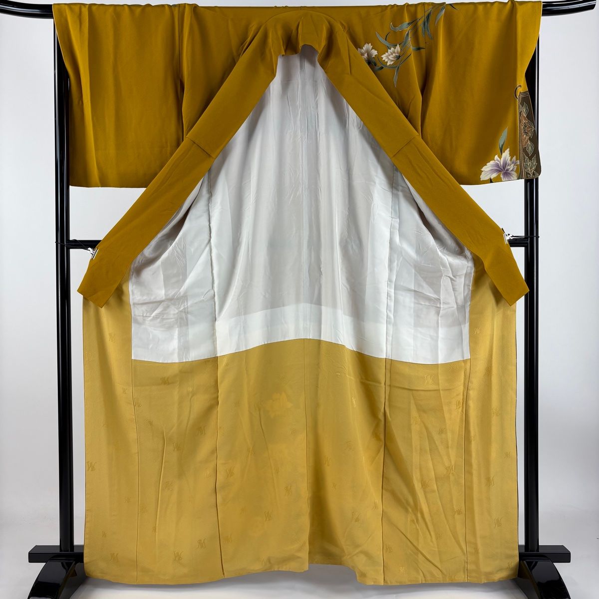 訪問着 身丈164.5cm 裄丈70cm L 袷 鈴乃屋 落款 牡丹 草花 金彩 ぼかし 山吹色 正絹 秀品 WWW_GLOBALQUALITYIMPORTS_COM
