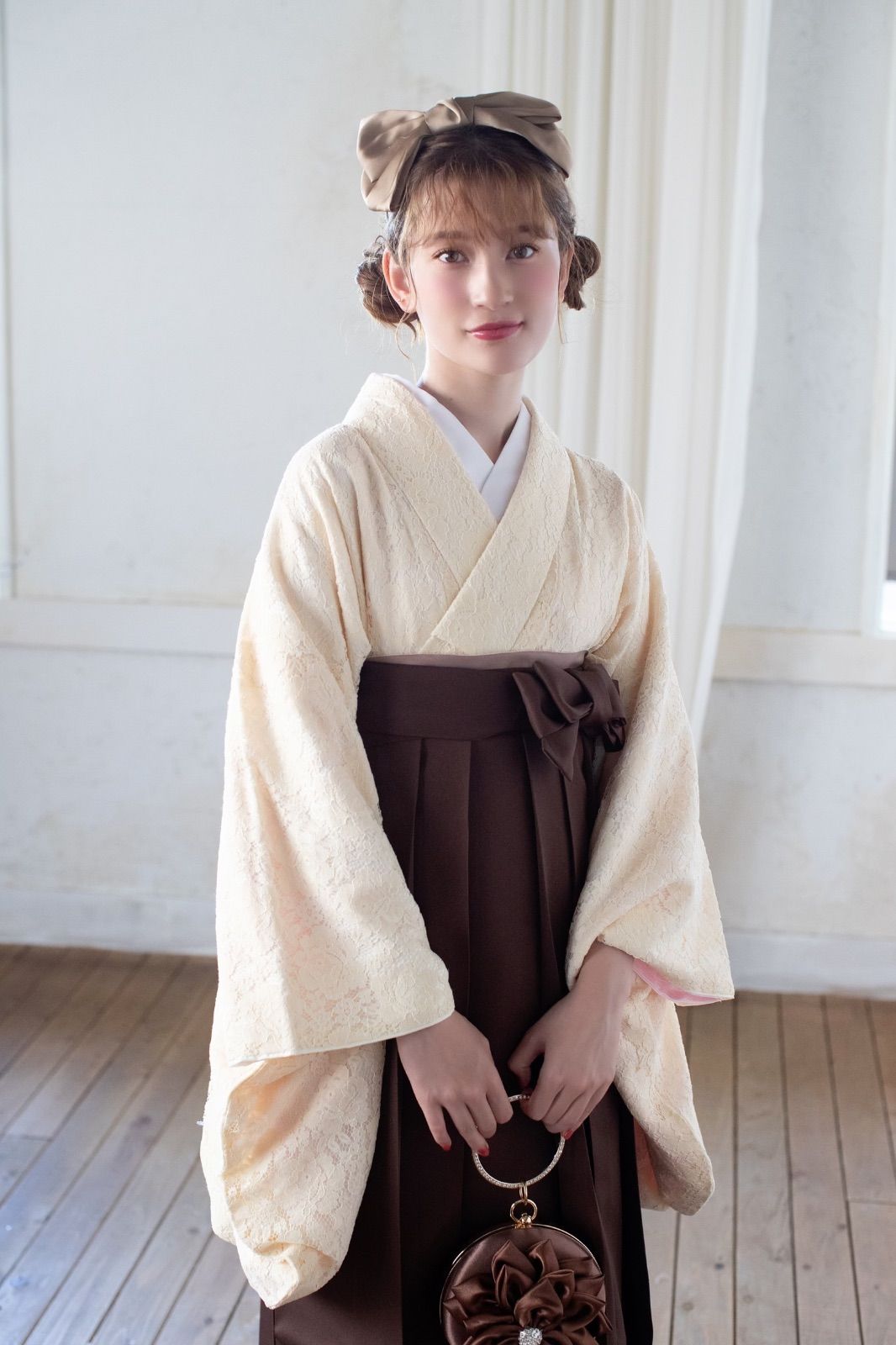 着物ジェンヌ 卒業式 袴3点セット 総レース二尺袖 袴 クリーム色 ブラウンの検索結果
