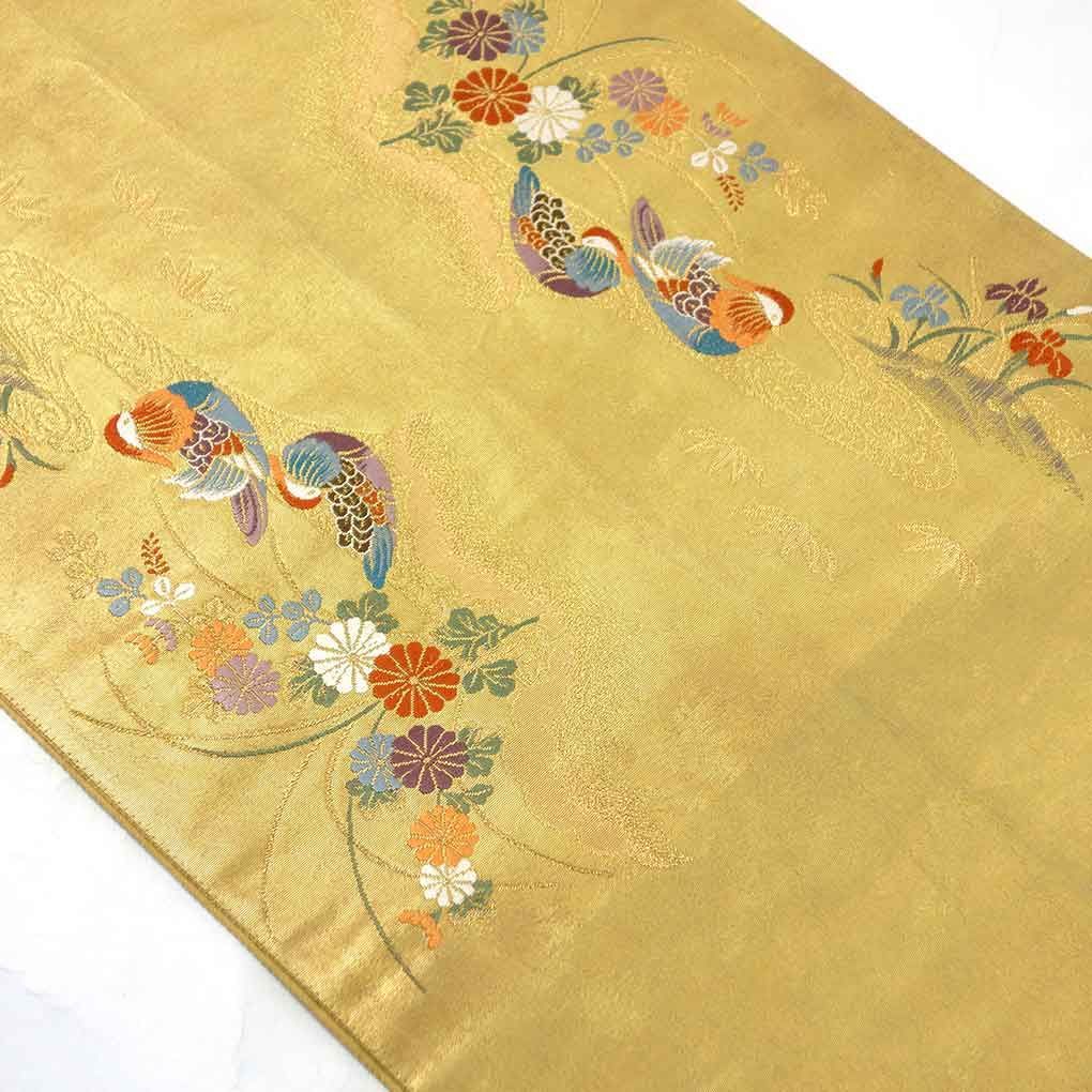 袋帯 幅31cm 長さ430cm レディース 風景画 秋冬春用 正絹 シルク ゴールド リメイク リユース リサイクル 呉服のきくや WWW_GLOBALQUALITYIMPORTS_COM