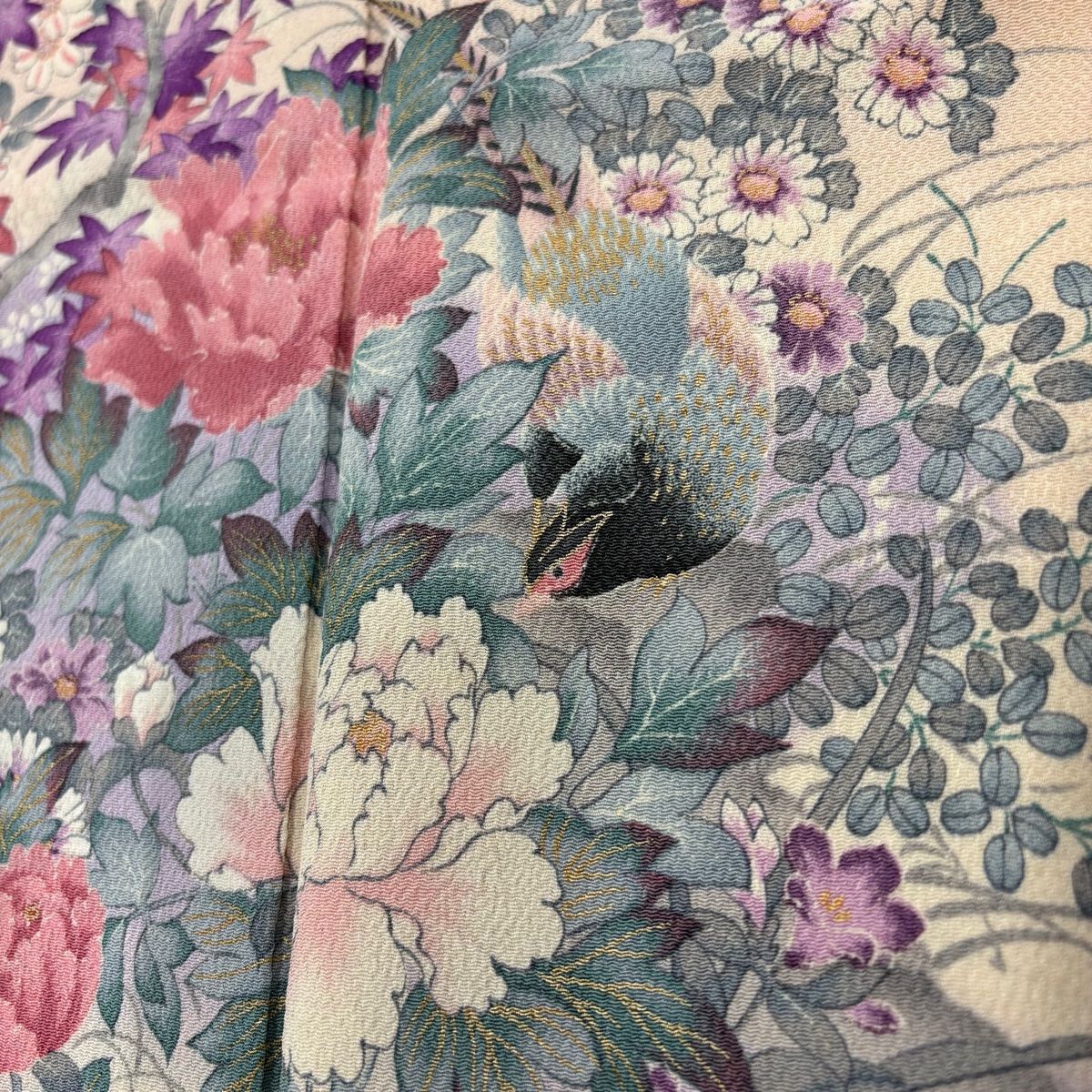 振袖 身丈161cm 裄丈64cm M 袷 牡丹 鳥 ちりめん 金彩 薄オレンジ 正絹 秀品の検索結果