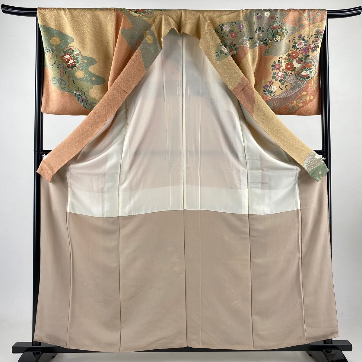 訪問着 身丈161.5cm 裄丈66.5cm M 袷 雪輪 草花 金糸 染め分け サーモンピンク 正絹 秀品の検索結果