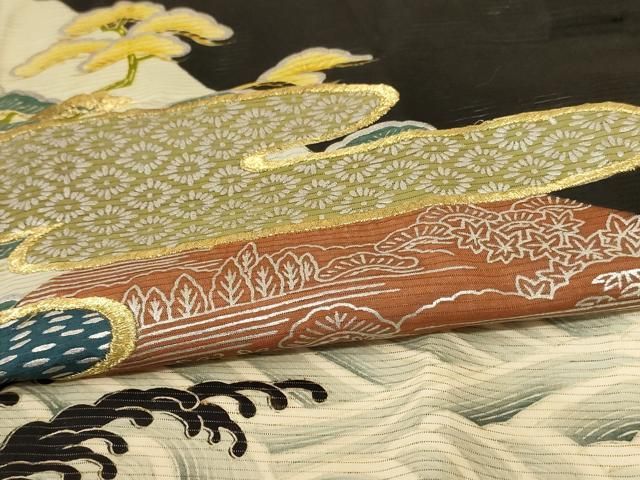 平和屋着物 夏物 アンティーク 大正ロマン 黒留袖 絽 刺繍 立波吉祥文 金糸 金銀彩 正絹 AABB8245jdの検索結果