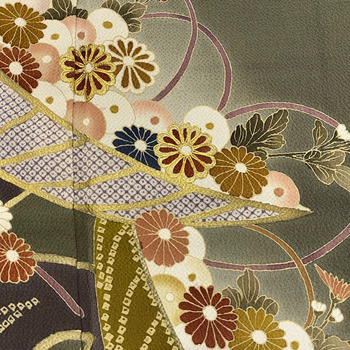 訪問着 身丈168cm 裄丈69cm L 袷 落款 菊 笠 金糸 金彩 茶緑色 正絹 秀品の検索結果