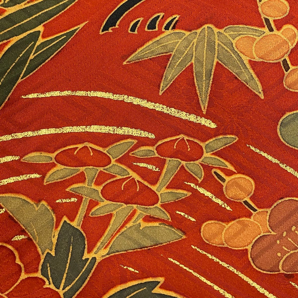 振袖 身丈168cm 裄丈68cm L 袷 御所車 波 金糸 金彩 赤 正絹