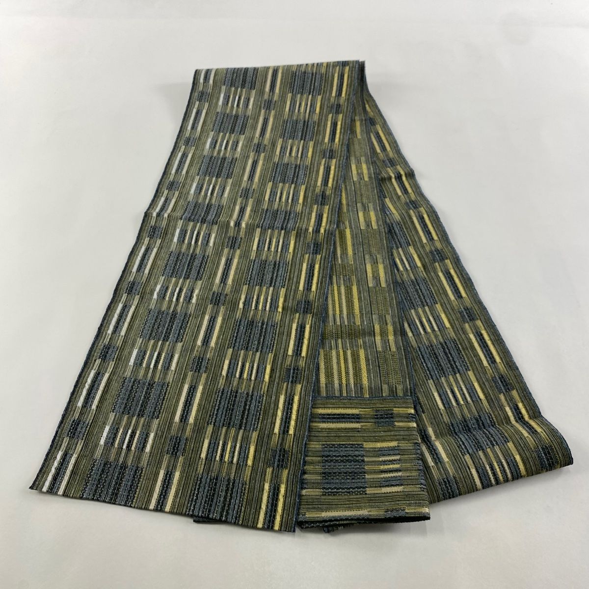 名古屋帯 秀品 松葉仕立て 八寸名古屋帯 縞 幾何学 茶緑色 正絹 WWW_GLOBALQUALITYIMPORTS_COM