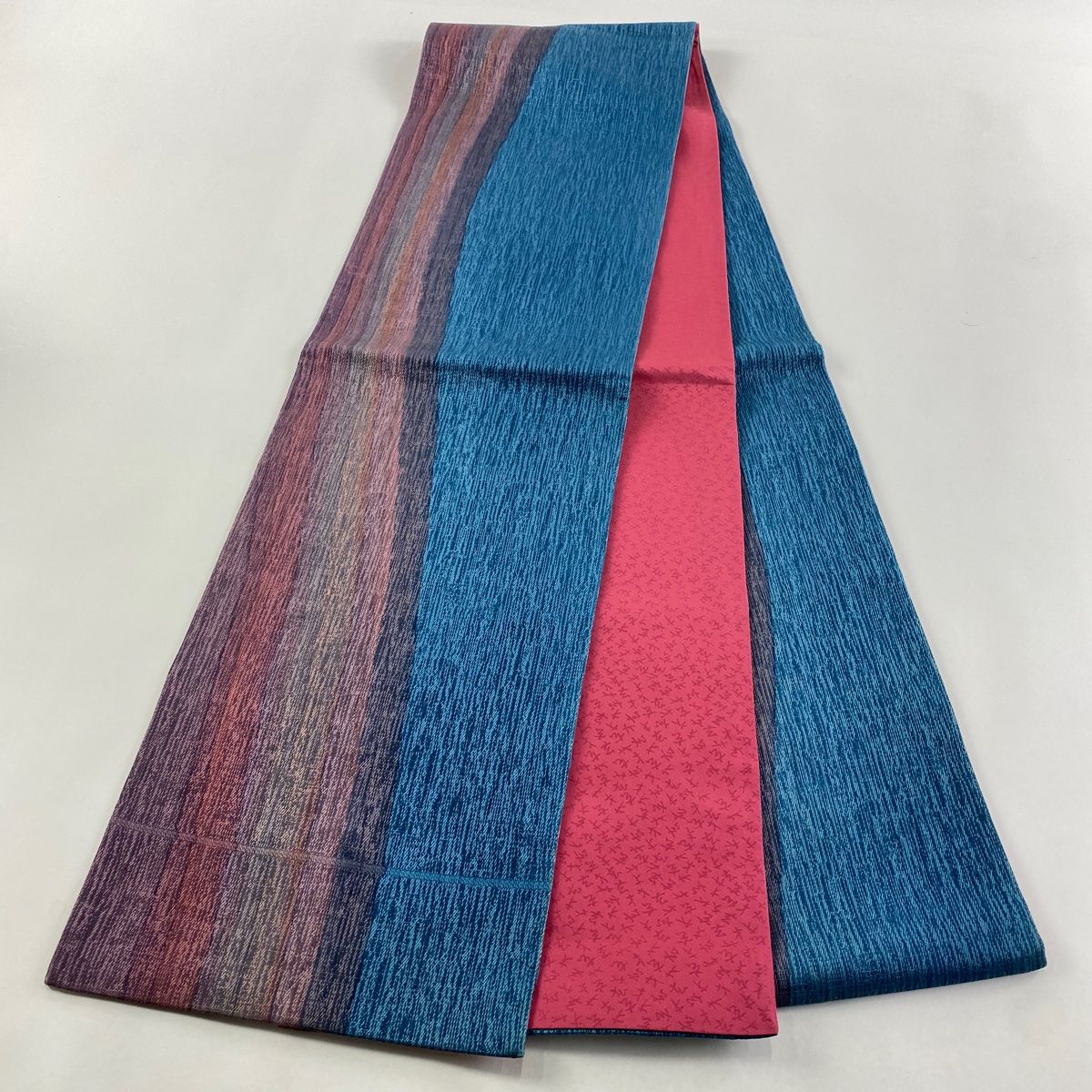 袋帯 幾何学模様 ぼかし 青緑 全通 正絹 WWW_GLOBALQUALITYIMPORTS_COM