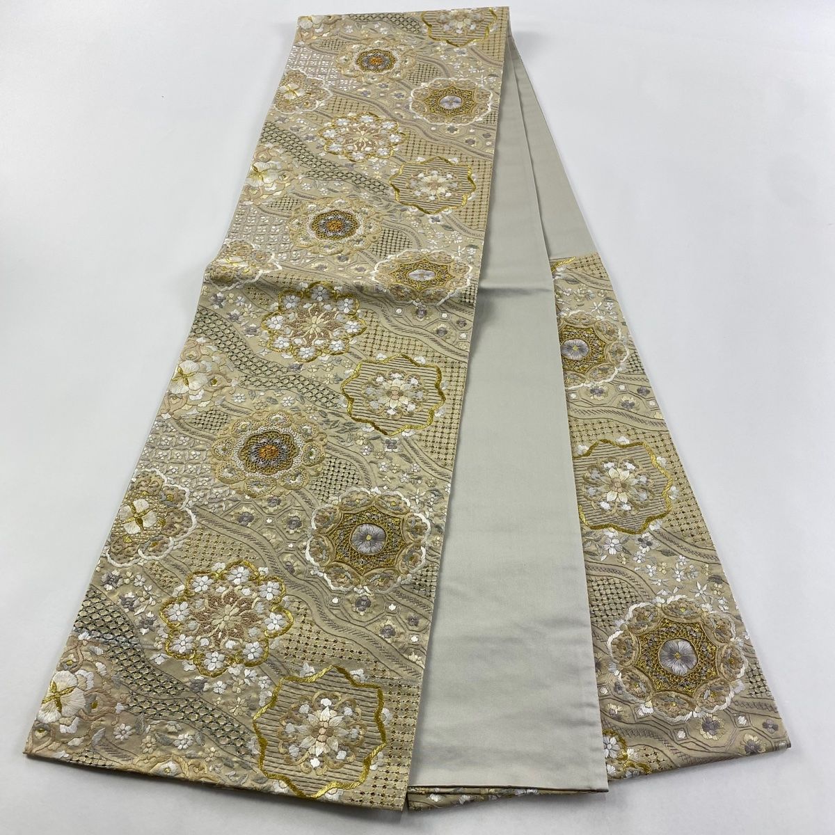 袋帯 レース 華文 草花 刺繍 金銀糸 金色 六通 正絹の検索結果