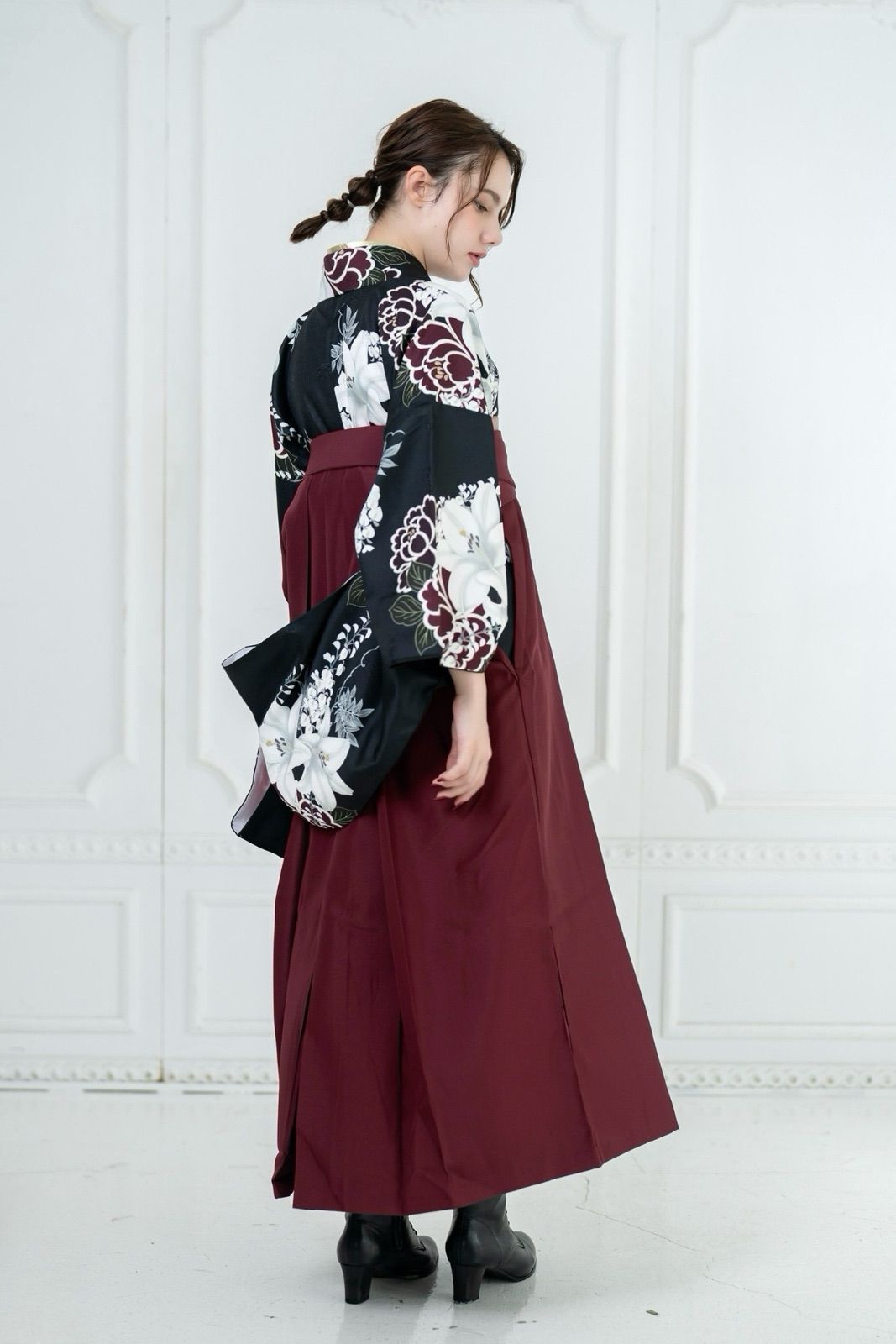 着物ジェンヌ 卒業式袴3点セット 黒 エンジ 古典柄 二尺袖 着物 袴 レディース袴 大学生 小学生の検索結果