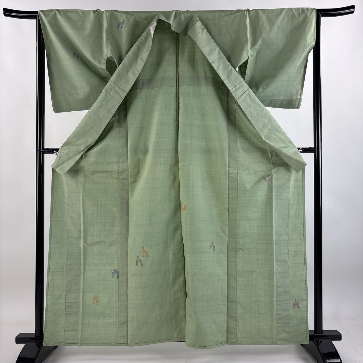 付下げ 身丈163cm 裄丈65cm M 単衣 紬地 ますいわ屋 琴柱 琵琶 薄緑 正絹 秀品の検索結果
