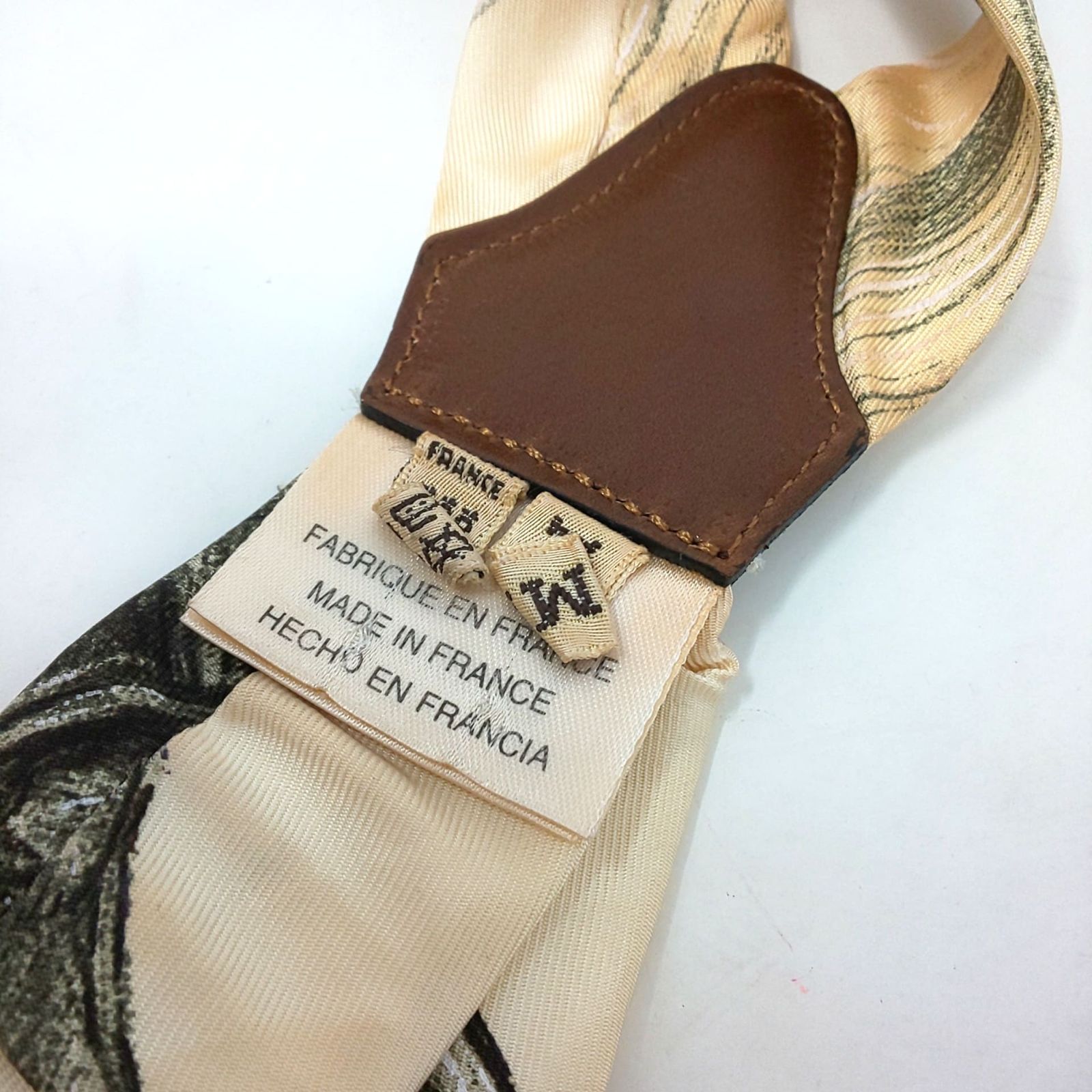 972A-07 HERMES エルメス シルク サスペンダー レザー 総柄 ゴールド金具 ブランド 服飾雑貨