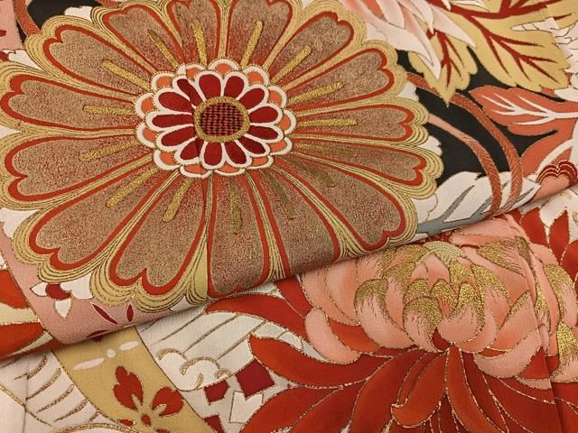 平和屋着物 アンティーク 大正ロマン 刺繍 花尽し 黒地 金彩 正絹 AABC8002phの検索結果