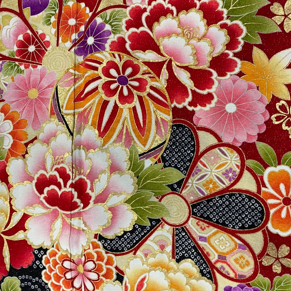 振袖 身丈175.5cm 裄丈71.5cm L 袷 草花 手鞠 銀通し 金彩 赤 正絹の検索結果