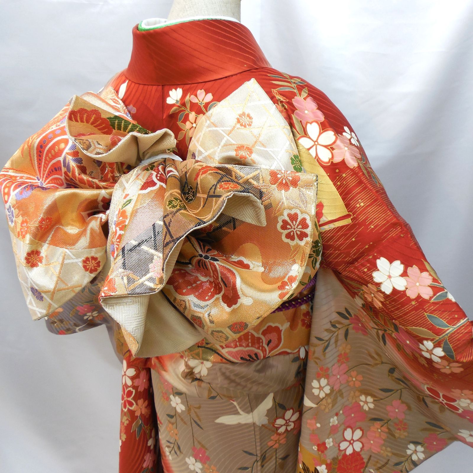 フォロワ割 振袖フルセット 正絹 成人式 振袖 7点セット 振袖Lサイズ レッド系 古典柄 花柄 華やかの検索結果