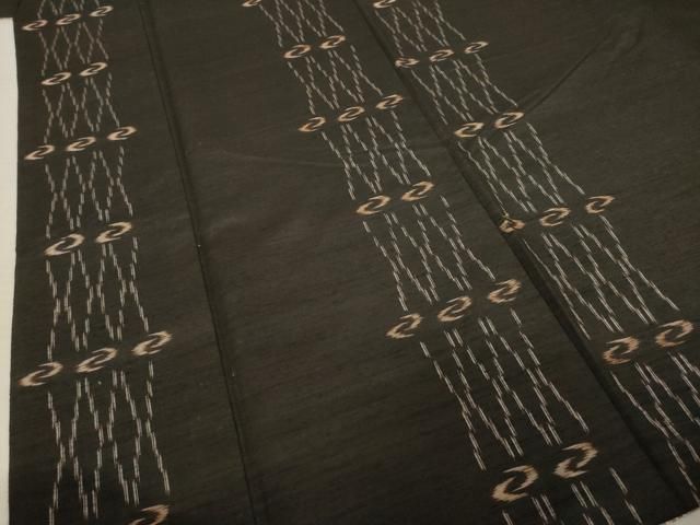 平和屋着物 国指定重要無形文化財 本場久米島紬 手織 トゥイグヮー 黒地 正絹 DAAY1814ps