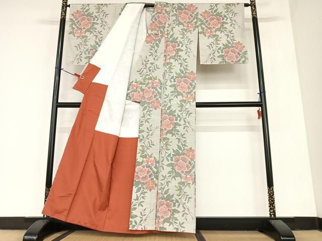 平和屋着物 上質な紬 横段花文 正絹 AABA0368zg
