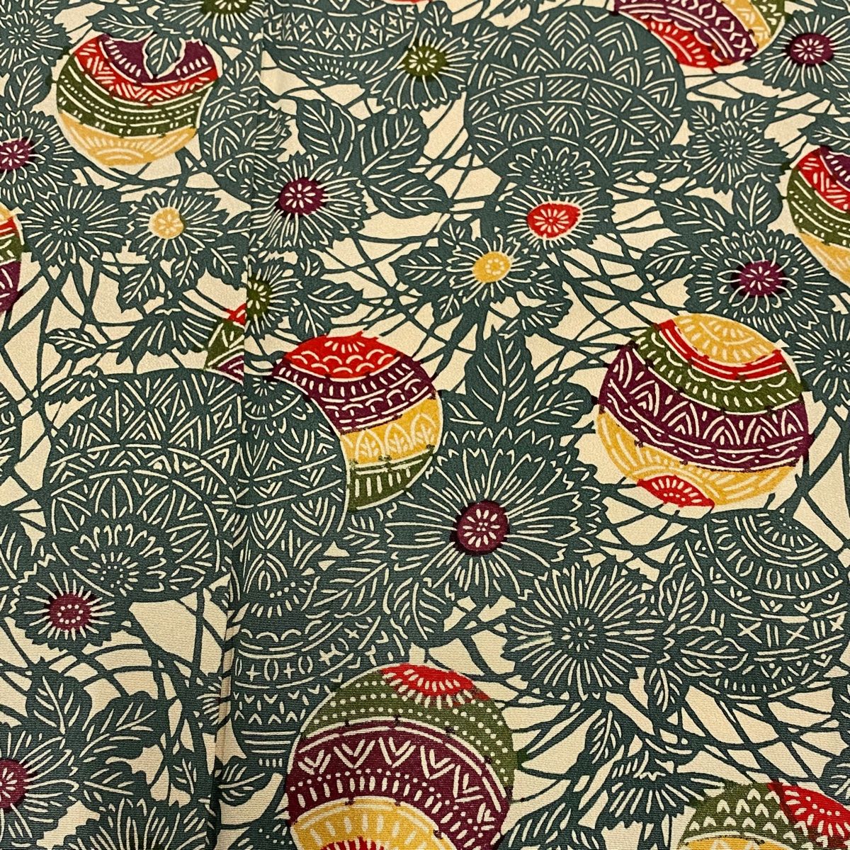 小紋 身丈163cm 裄丈68cm L 袷 落款 手鞠 菊 灰緑 正絹 秀品の検索結果