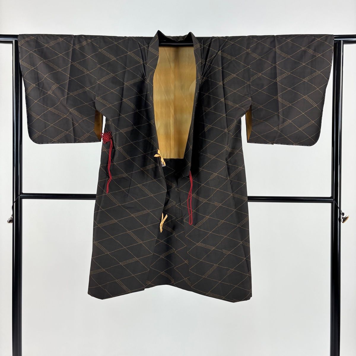 道中着 身丈106cm 裄丈62.5cm S 和装コート 着物衿 紬地 斜め格子 焦茶色 正絹の検索結果