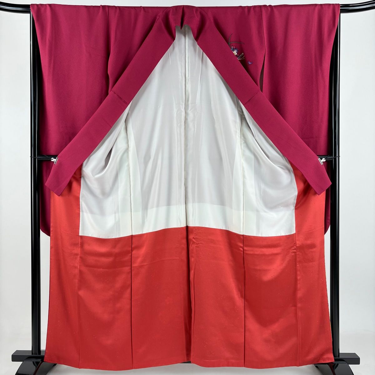 振袖 身丈160cm 裄丈67cm M 袷 花車 几帳 金彩 染め分け 濃ピンク 正絹 秀品の検索結果