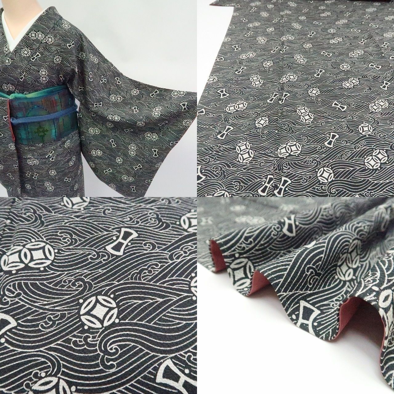 ❁tomihisa❁ 着物 正絹 仕付け糸付 トールサイズ 黒×金で個性を添えて和装を楽しむ 小紋 6971