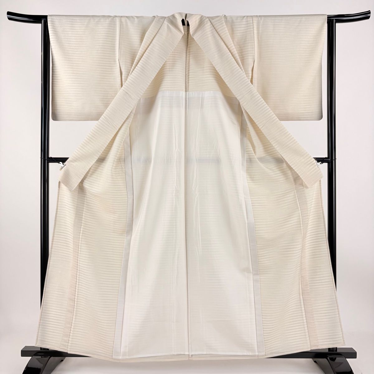お召 身丈160cm 裄丈63cm S 薄物 本塩沢 証紙 縞 ベージュ 正絹の検索結果