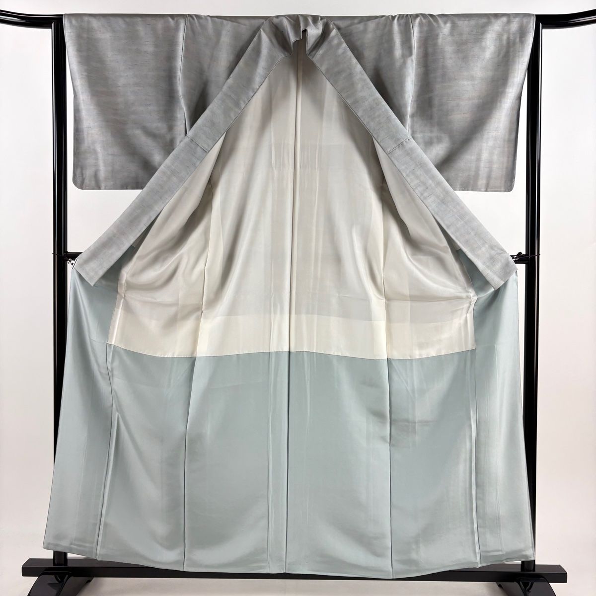小紋 身丈160cm 裄丈64cm M 袷 牛首紬地 落款 霞 ぼかし 青灰色 正絹 一つ紋 WWW_GLOBALQUALITYIMPORTS_COM