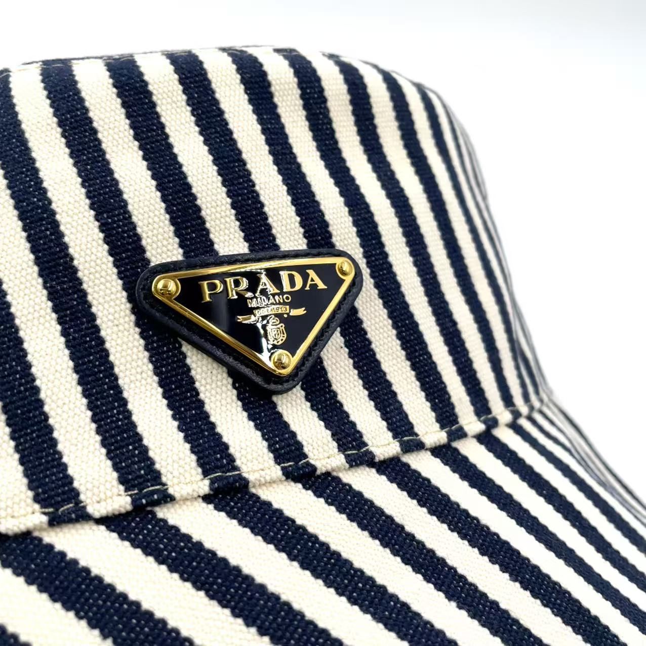 PRADA ストライプ RFID対応 キャンバス ネイビー×ホワイト バケットハット ゴールドの検索結果