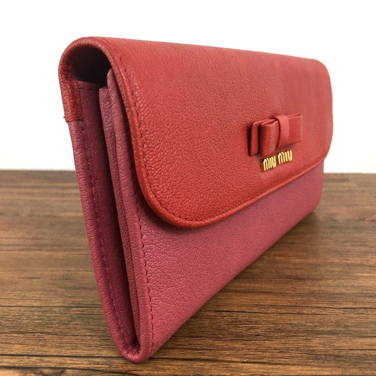 453 み MIUMIU 長財布 5M1109 レザー ピンク レッド リボン カードケース付きの検索結果