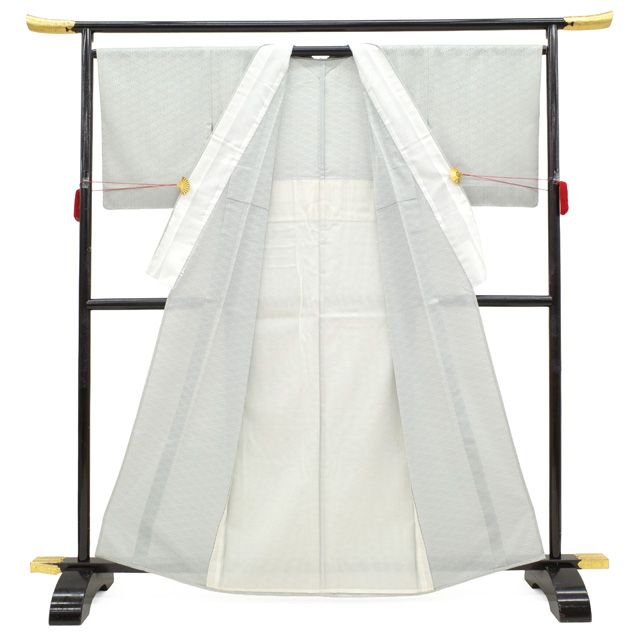夏物 単衣 着物 リサイクル 正絹 紋紗 先染 西陣 御召 龍村美術織物 監修 青みがかった ライトグレー地 瑞祥松菱文 上上品 カジュアル 夏着物 夏 薄物 仕立て上がり 身丈163 裄丈67 Mサイズ みやがわ sbs16279 WWW_GLOBALQUALITYIMPORTS_COM