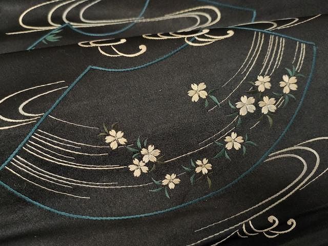 平和屋着物 アンティーク 大正ロマン 六通柄京袋帯 刺繍 地紙舞葉文 黒地 正絹 CAAX9311ykの検索結果