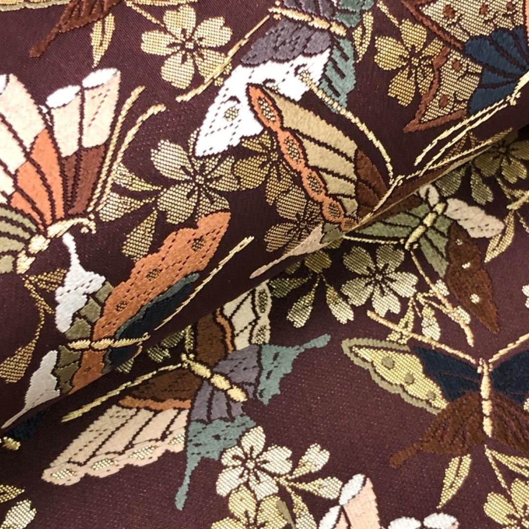 袋帯 百壽 枝垂桜に蝶々 流水 黒紅梅色 金糸 O-5679の検索結果