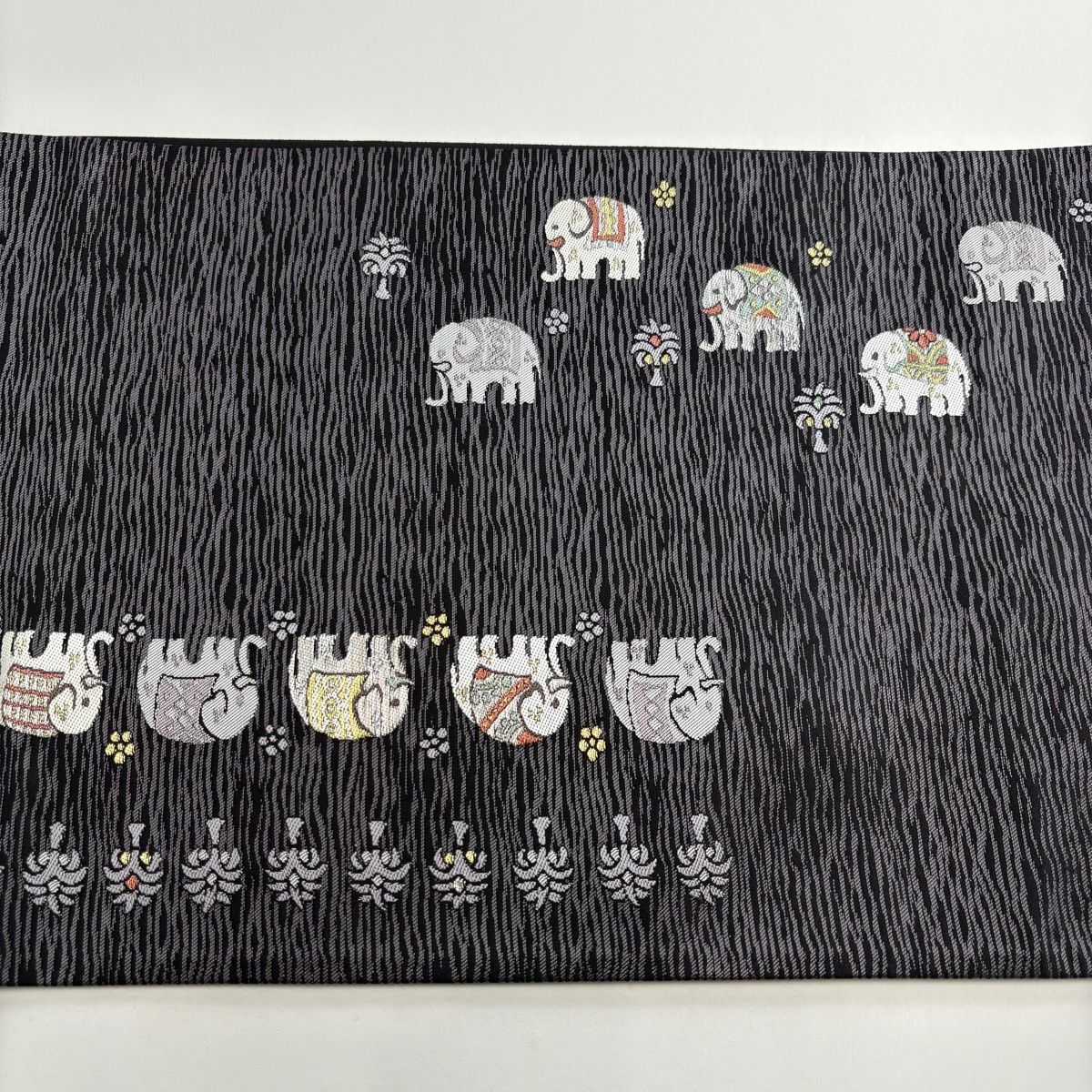 袋帯 西陣織 象 花 金銀糸 黒 お太鼓柄 正絹 WWW_GLOBALQUALITYIMPORTS_COM