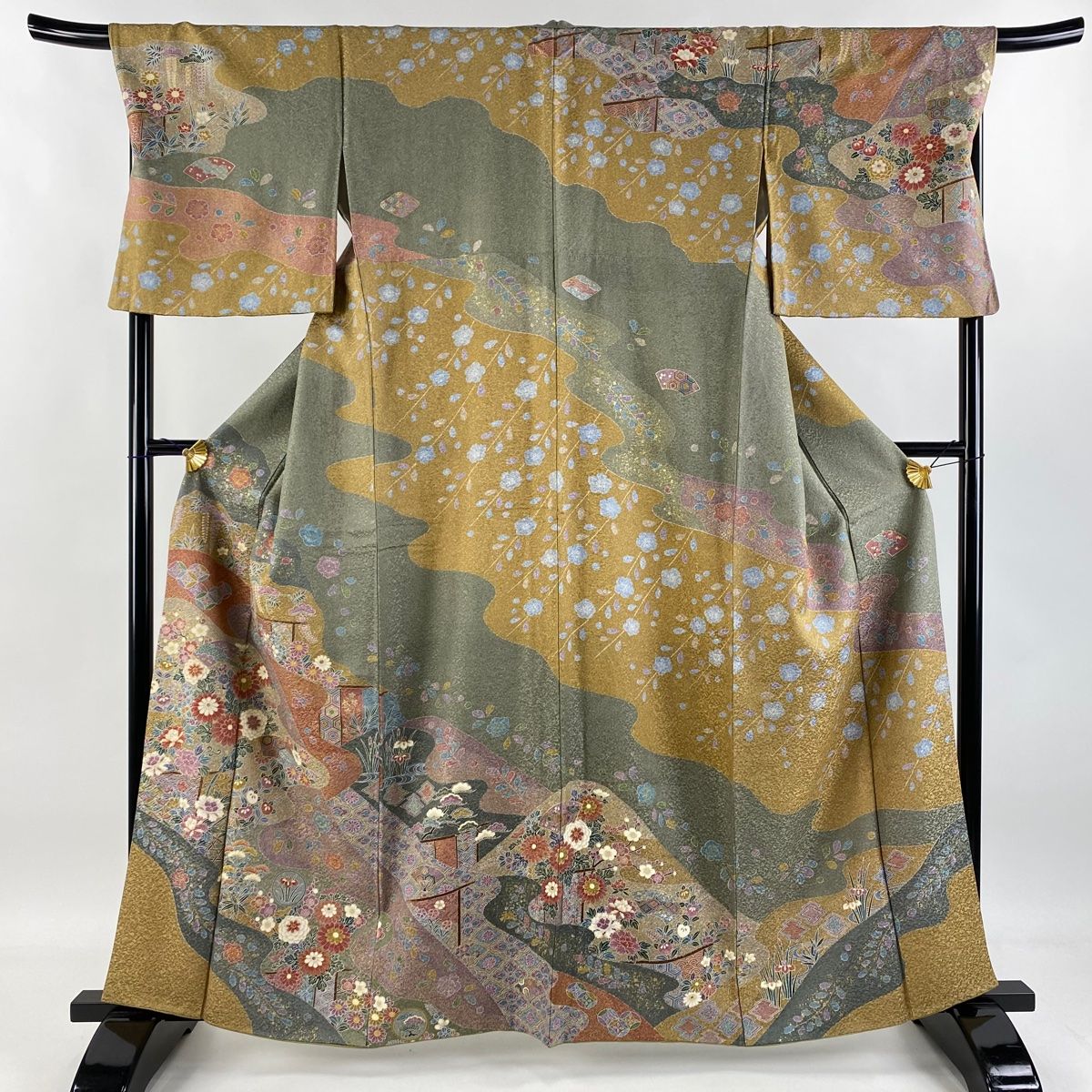 訪問着 身丈162.5cm 裄丈68cm L 袷 袋帯セット 菊 几帳 金彩 染め分け 灰緑 正絹の検索結果