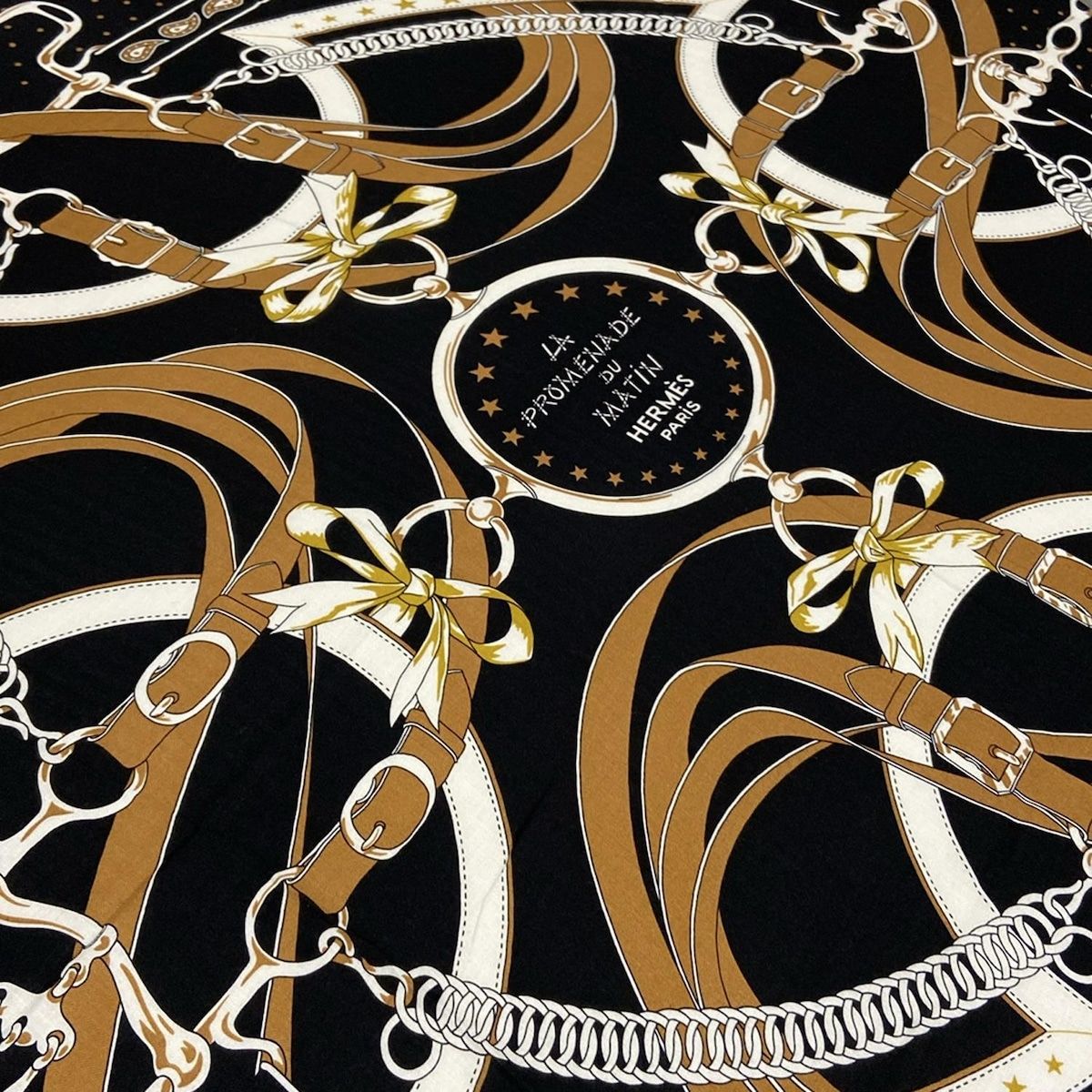 HERMES エルメス ストール ショール カレジェアン カレ140 黒×ブラウン×白 LA PROMENADE DU MATIN カシミヤ シルクの検索結果
