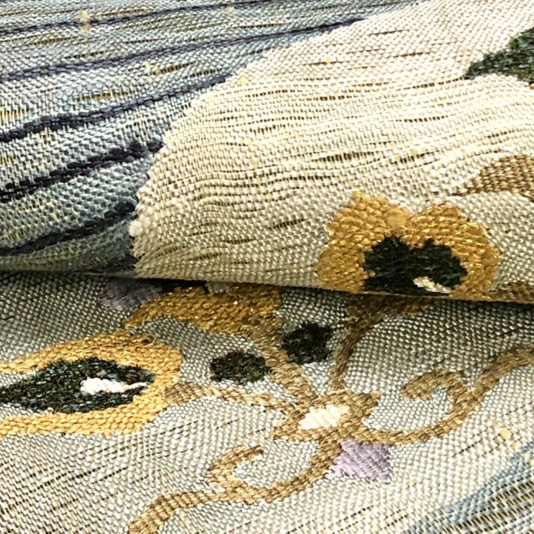 袋帯 唐織 花模様 空鼠色 金糸 O-5711