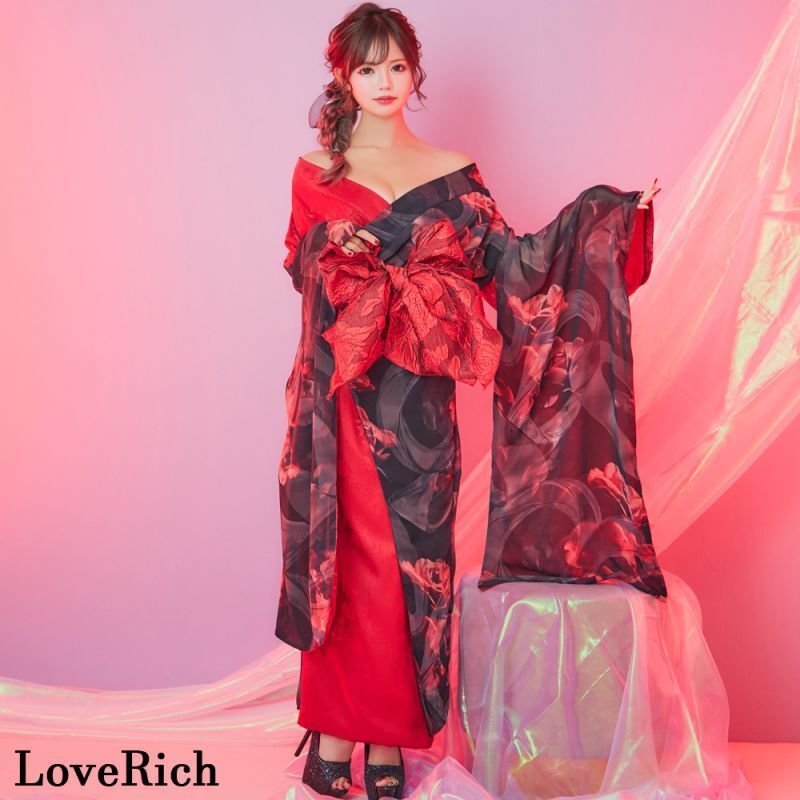 LoveRich ラブリッチ ライン 2点セット バイ 総花柄 サテン&シフォン オフショル ツートン 豪華 帯 花魁 着物 ドレス コスプレ イベント 1308の検索結果