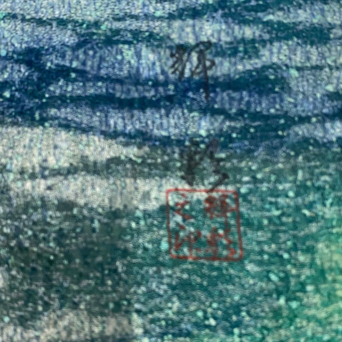 小紋 身丈154cm 裄丈61cm S 袷 落款 霞 幾何学模様 金彩 青緑 正絹 秀品の検索結果