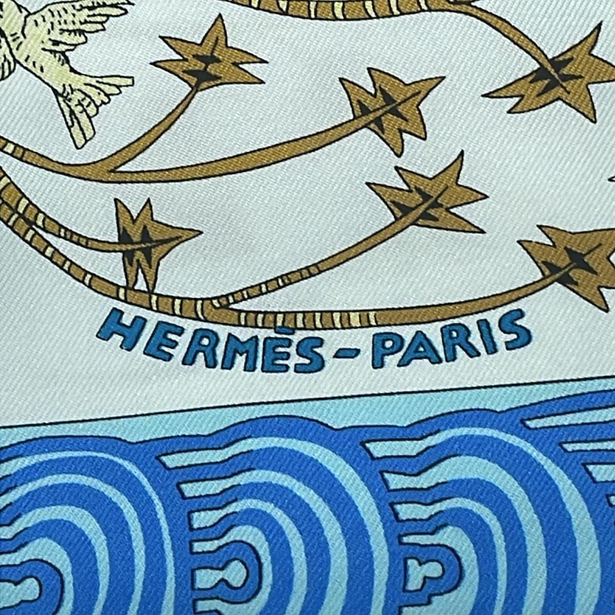 HERMES エルメス スカーフ カレ90 ブルー×白×マルチ Les Legendes de l Arbre WWW_GLOBALQUALITYIMPORTS_COM