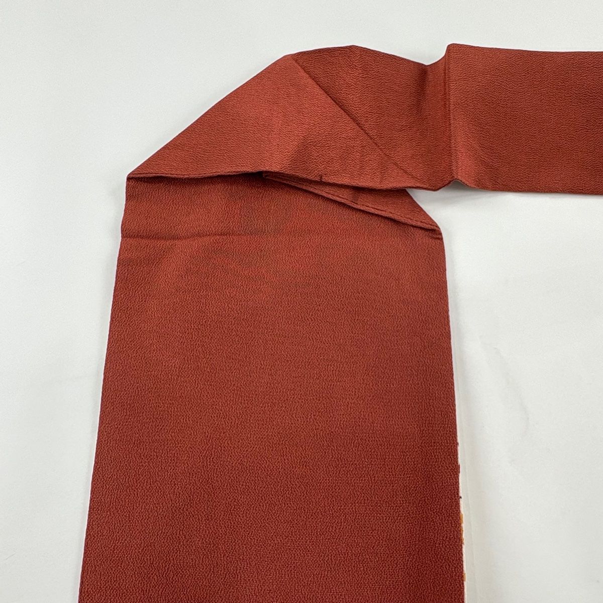 名古屋帯 秀品 文字文 花 縮緬 赤茶 正絹 WWW_GLOBALQUALITYIMPORTS_COM