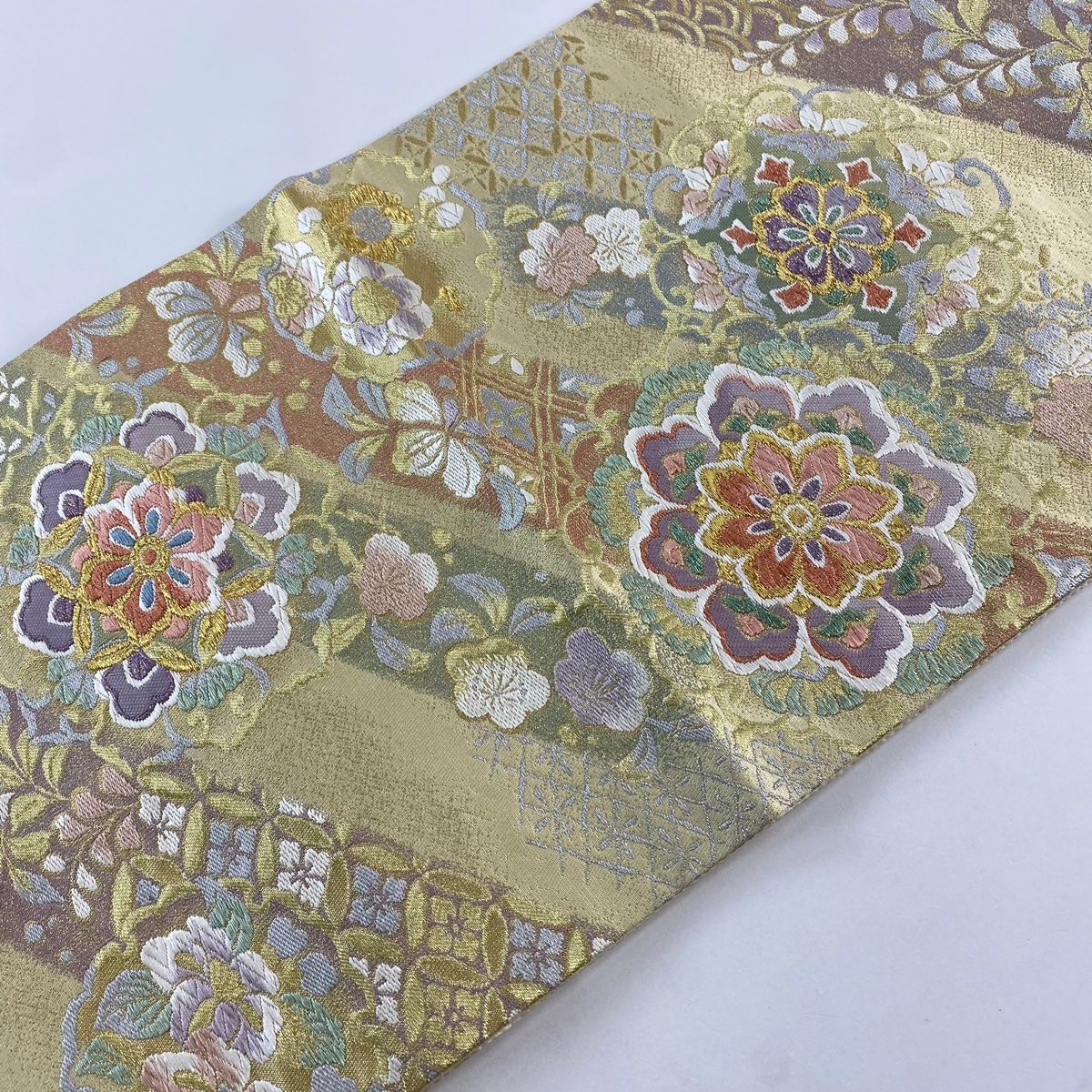 袋帯 秀品 華文 雪輪 金銀糸 箔 薄黄 六通 正絹 WWW_GLOBALQUALITYIMPORTS_COM